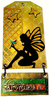 En este tag trabajamos con metales como podemos ver fue un tag bastante trabajado ya que tuve que cortar las piezas del hada y la rejilla con cuter o exacto... la base la embose y utilice pintura acrílica en colores metalizados, el cartelito lo realice con el protector que viene en las latas de alimentos y aplique el falso relieve... El toque de la rosa me gusto mucho y esta hecha en Masa Flexible... El paso a paso se los dejo por Aquí por mi canal de Youtube por si lo quieren intentar